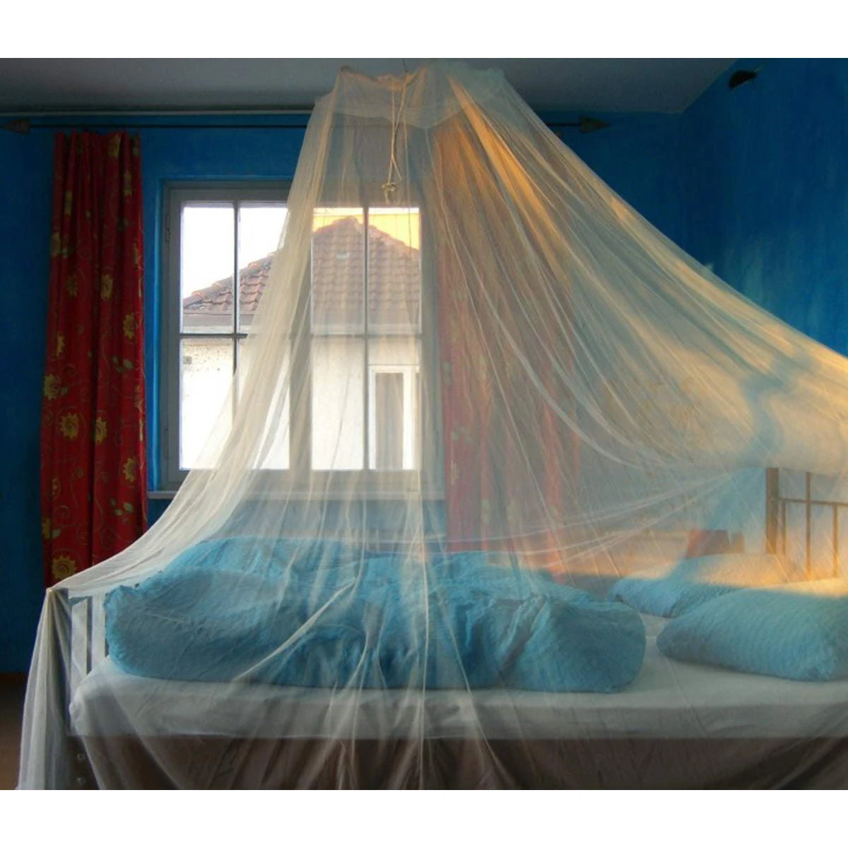 Das Moskitonetz Holiday Bell von Brettschneider wird auf Reisen oder auch zu Hause leicht und einfach über dem Bett aufgehängt. Modell Bell passt über Einzelbetten und schmale Doppelbetten. Den Baldachin spannt eine kleine Bambusspinne. Merkmale: Mechanischer Schutz vor Stechmücken; 210 – 230 mesh per square inch; 100 % Polyester, weiß; Für ungestörten Schlaf zu Hause, in der Ferienwohnung oder auf Reisen; Gesundheitsschutz vor durch Insekten übertragene Krankheiten; nützlich und dekorativ. Das Moskitonetz hat keinen seitlichen Eingang, man hebt es kurz an um unter das Netz zu kommen. Ein zusätzlicher Eingang birgt die Gefahr, dass man diesen aus Versehen nicht schließt und somit Mücken und andere Flugwesen in das Netz gelangen können.