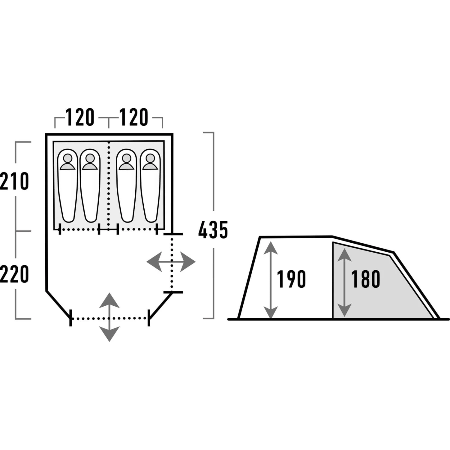 | Maße Außenzelt ca. | 435 x 250 x 190 cm |