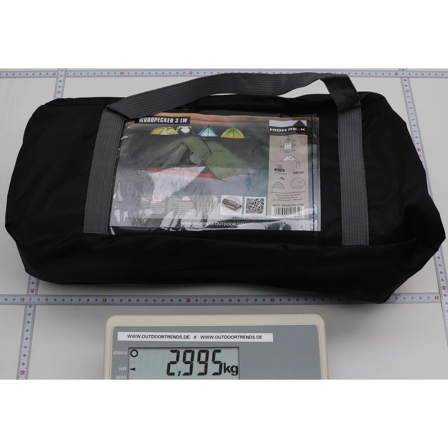 Das Woodpeckers 3 LW von HIGH PEAK ist ein freistehendes 3 Personen Kuppelzelt mit hochwertigem Aluminiumgestänge und relativ kleinem Packmaß. Die Aluminiumgestängehaben eine hochwertige 7001 Aluminiumlegierung mit einem Härtegrad von T6. Innenliegende Verbindungshülsen bilden eine glatte Außenfläche und laufen perfekt ohne zu verhaken durch die Gestänge Kanäle für leichte Handhabung. Die stabilen und flexiblen Gestänge geben dem Zelt eine hohe Windstabilität. Extra leichte und stabile Aluminium Erdnägel verankern das Zelt und Spannleinen sicher im Grund. Das Dachgestänge bildet die 2 Apsiden für Gepäck und wettergeschützte Eingänge. 2 Dauer- Hochentlüfter für Luftzirkulation auch an regnerischen Tagen. Die Ventilationen sollten immer geöffnet sein. Innenzelt mit 2 Moskitonetz Eingängen für luftiges Klima bei Warmwetter Perioden und schützt vor Insekten. Praktische Innentaschen und Lampenhalter. Das Woodpecker 3 LW bietet Platz für bis zu 3 Personen mit Gepäck und ist bestens geeignet für Trekking – Rucksackreisen – Fahrrad- und Motoradtouren und alle Camper, die auf unnötiges Gewicht und sperriges Packmass gerne verzichten.