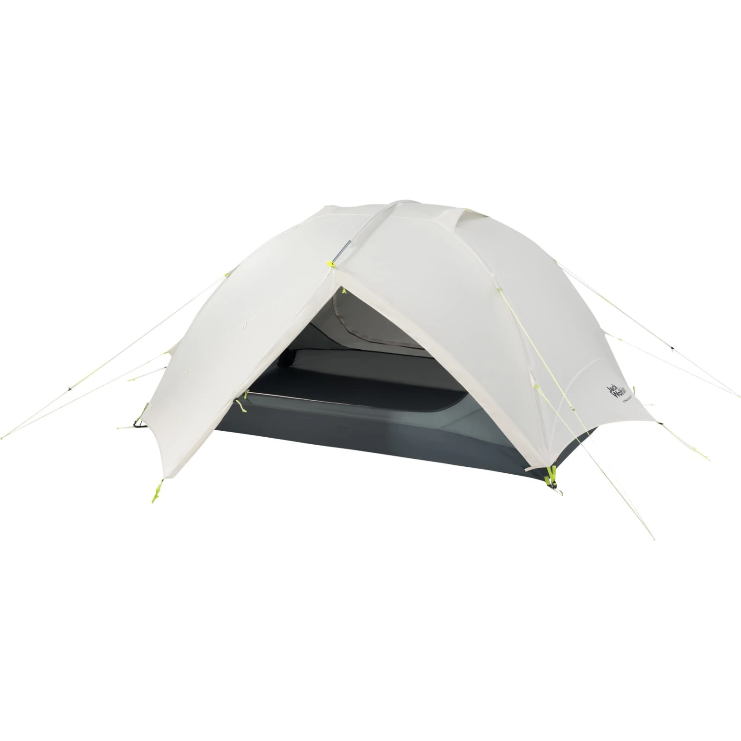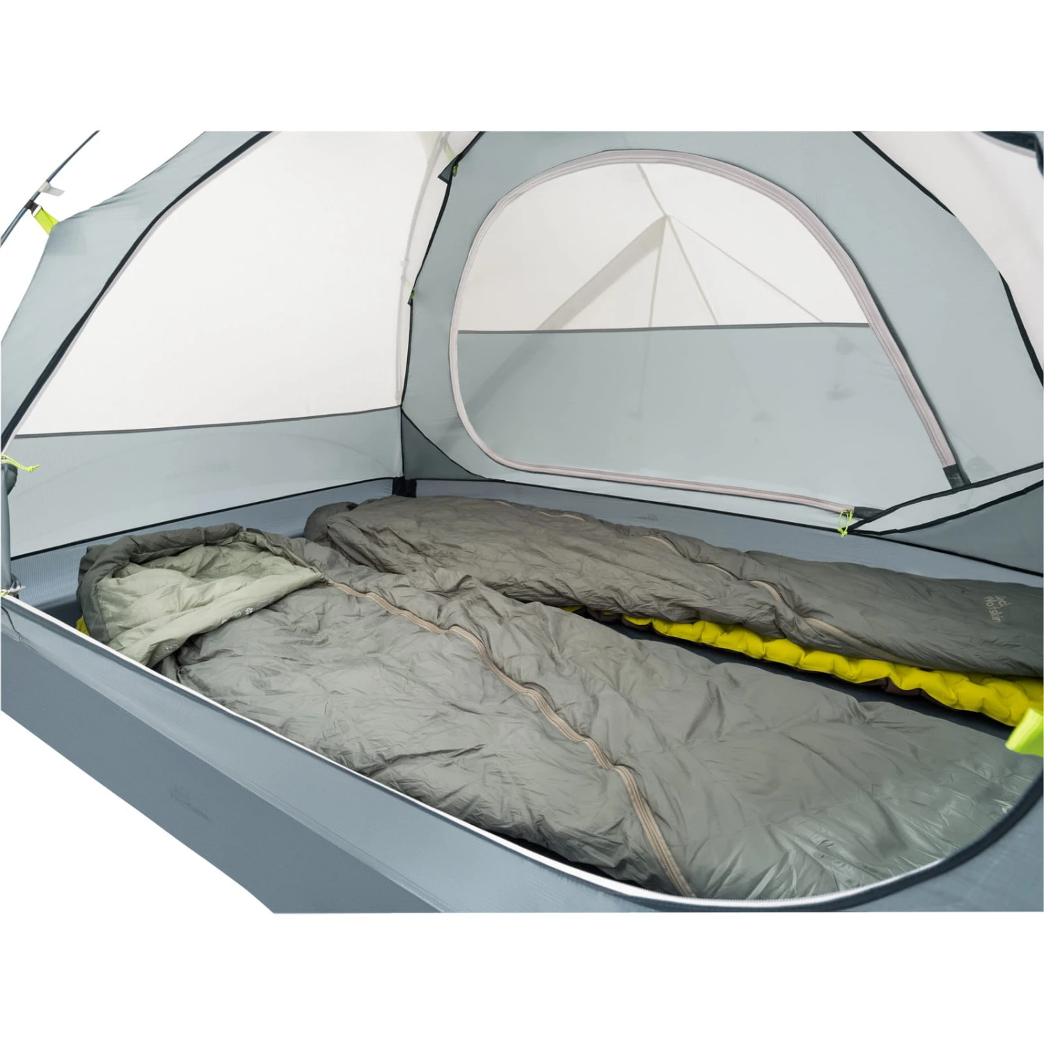 Das Real Dome Lite III von Jack Wolfskin ist ein Kuppelzelt für drei Personen. An jeder Längsseite hat das Zelt einen Eingang mit Apsis, so dass es gut belüftet werden kann. Das Zelt ist schnell und einfach aufgebaut und wird aus recyceltem Nylon gefertigt. Vier Innentaschen bieten Stauraum für Kleinteile sowie Ausrüstung und sorgen für Ordnung im Zelt. Auf felsigem Untergrund steht die Kuppelkonstruktion ganz ohne Abspannung. Bei starkem Wind oder Regen kann die Stabilität mit den Abspannleinen erhöht werden.