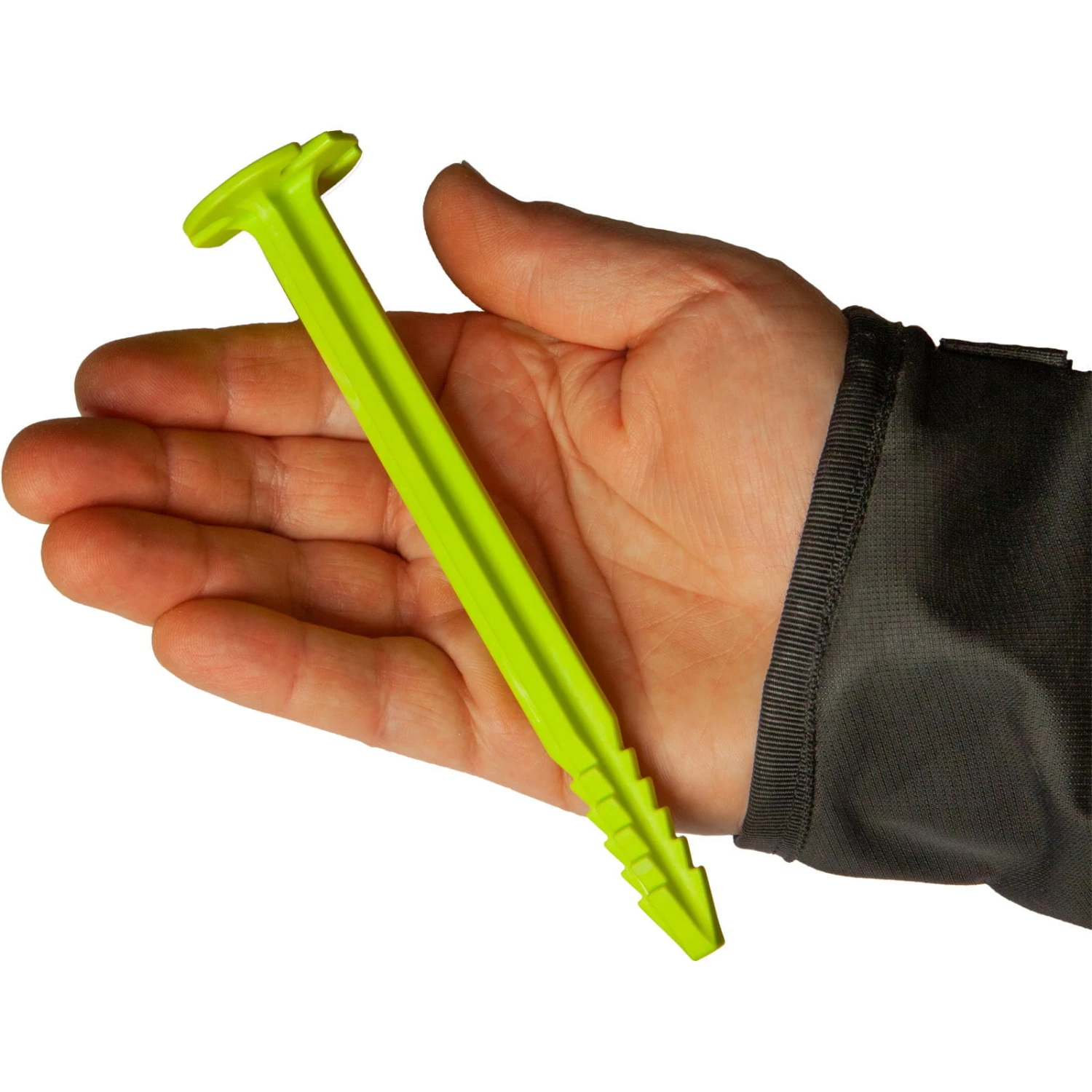 Die GS150 von SwissPiranha sind federleichte, stabile und umweltfreundliche Kunststoff Zeltheringe. Die Heringe sind bestens geeignet für harte wie auch weiche Böden und können für mittelgroße Zelte (3-6 Personen), größere Tarps, Vorzelte, Pavillons, Picknick-Decken, etc. verwendet werden. Die GS150 sind aus der GreenShark-Serie von SwissPiranha, bestehen zu 100% aus biobasiertem Kunststoff pflanzlicher Herkunft und sind absolut gentechnikfrei. GreenShark-Heringe werden aus dem biobasiertem Kunststoff PiranhaBT hergestellt. PiranhaBT ist eine feste und zugleich biologisch abbaubare Verbindung mit hoher Hitzebeständigkeit auf der Basis von Polymilchsäure (PLA) pflanzlichen Ursprungs. Es ist gentechnikfrei und durch “OK COMPOST” als industriell kompostierbar zertifiziert. Im Boden vergessene Heringe verrotten über mehrere Jahre, ähnlich wie ein Stück Holz.