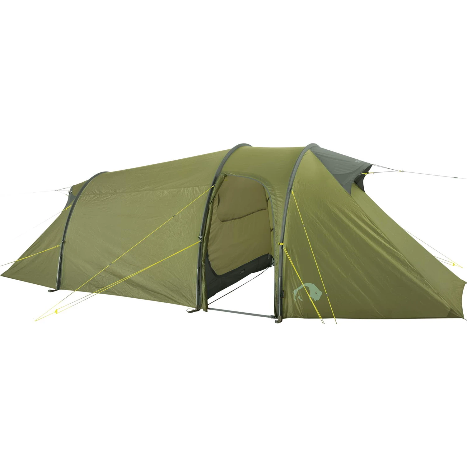 Mit seiner großen Apside ist das 3-Mann-Zelt Grönland 3 von Tatonka die perfekte Wahl für Touren, auf denen mehr Gepäck untergebracht werden muss. Die Apsis besitzt einen Seiteneingang und kann bei schlechtem Wetter als Kochplatz dienen. Das Tunnelzelt ist, mit der Schmalseite zur Windrichtung ausgerichtet, äußerst windstabil. Das Außenzelt des 3-Personen-Zeltes ist aus leichtem, auf der Innenseite vierfach PU-beschichtetem, wasserdichtem Polyester mit einer eine Wassersäule von 8.000 mm gefertigt. Das Material ist farbecht und UV-beständig. Der wasserdichte Zeltboden aus PU-beschichtetem Nylon mit einer Wassersäule von 10.000 mm schützt optimal vor Nässe von unten. Das Innenzelt besteht aus luftdurchlässigem Nylonmaterial, das Zeltgestänge aus Aluminium ist leicht und bruchfest. Das Tunnelzelt wird einfach und schnell samt Innenzelt mit drei Gestängebögen aufgestellt und in Längsrichtung abgespannt. Der verkürzte hintere Gestängebogen spart Material und Gewicht. Das Innenzelt lässt sich auch aushängen, um es bei Regen trocken zu verstauen.