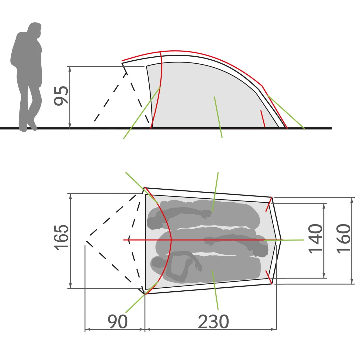 | Maße Außenzelt ca. | 325 x 140 – 165 x 100 cm |
