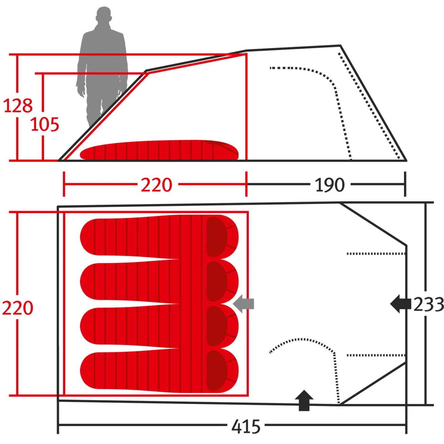 | Maße Außenzelt ca. | 415 x 233 x 135 cm |
